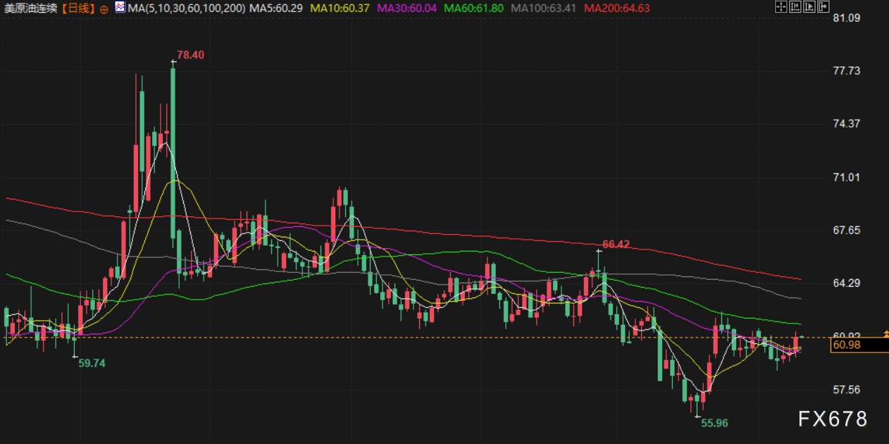 油价周二显著上涨,布伦特原油期货上涨1.72%,报每桶65.16美元;美国原油期货上涨1.51%,报每桶61.04美元。市场受到美国对俄罗斯实施新制裁及美国政府停摆有望结束的双重提振,但供应过剩担忧仍限制油价涨幅。